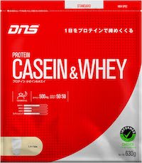 ホエイ:カゼイン=1:1のブレンドです。カゼインには少ないロイシンを追加することでホエイ並みのアミノ酸組成としています。1食分33gにロイシン500mgを含みます。
