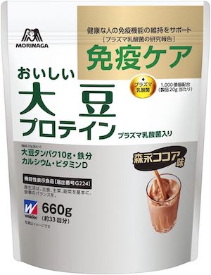 タンパク質はホエイと大豆です。子供に不足しがちな栄養素が配合されています。ホットでもアイスでも美味しく飲めます。